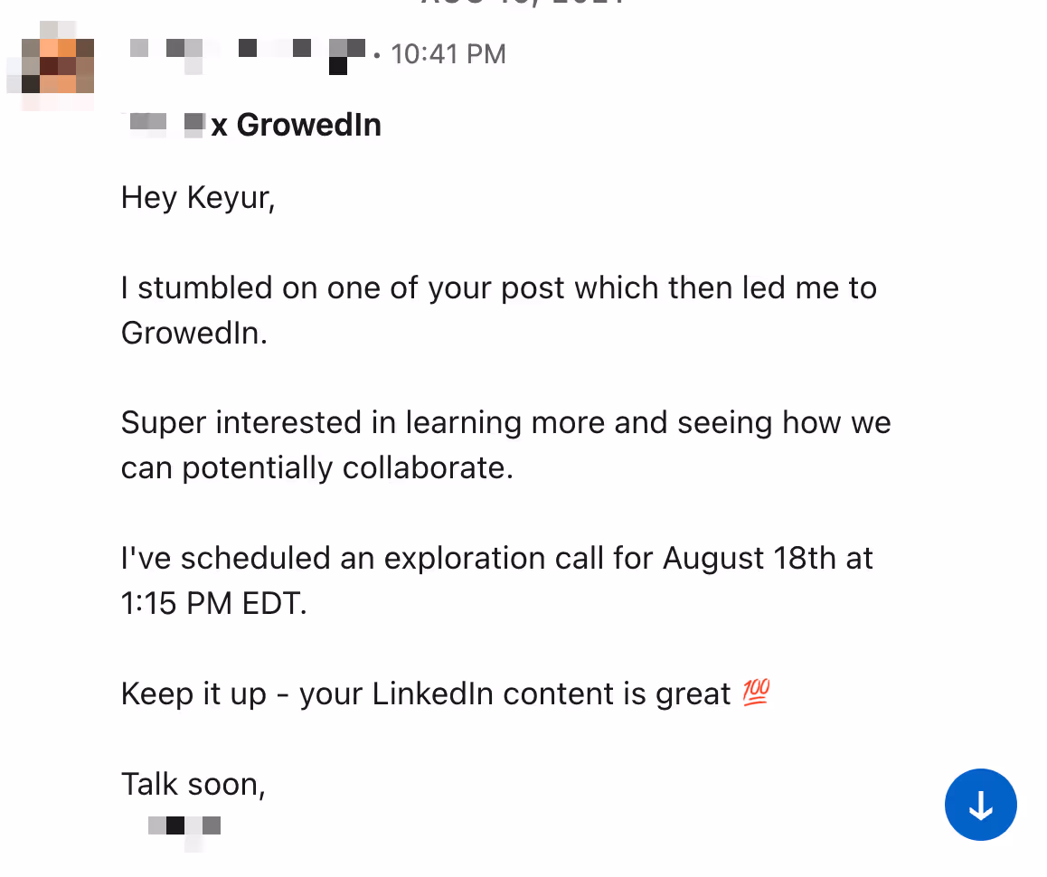 At GrowedIn, we partner with executives and brands to help them build their LinkedIn presence with best-in-class content, strategy, and paid reach. If you’d like to discuss LinkedIn branding for your profile, feel free to schedule a call with us.